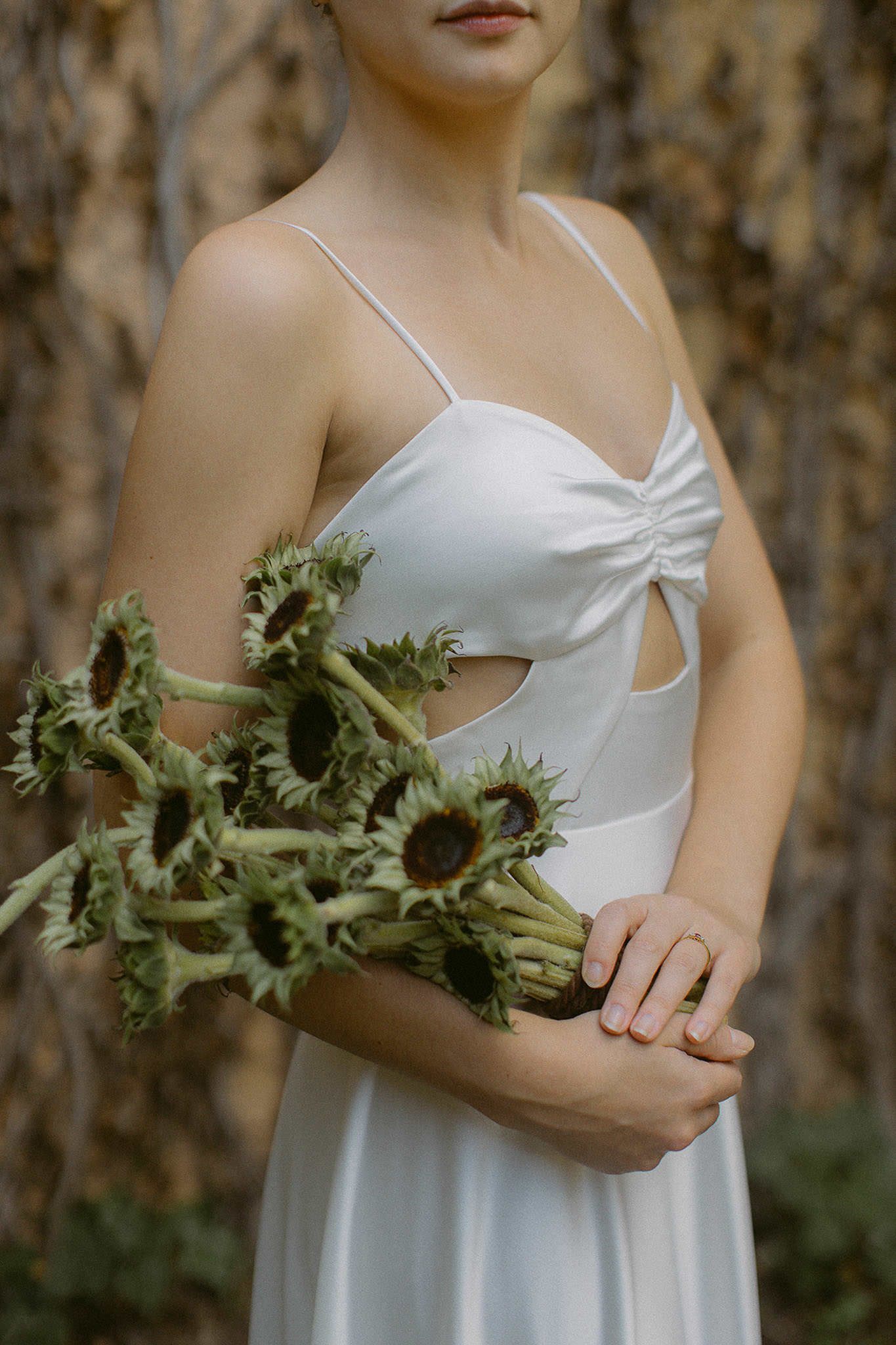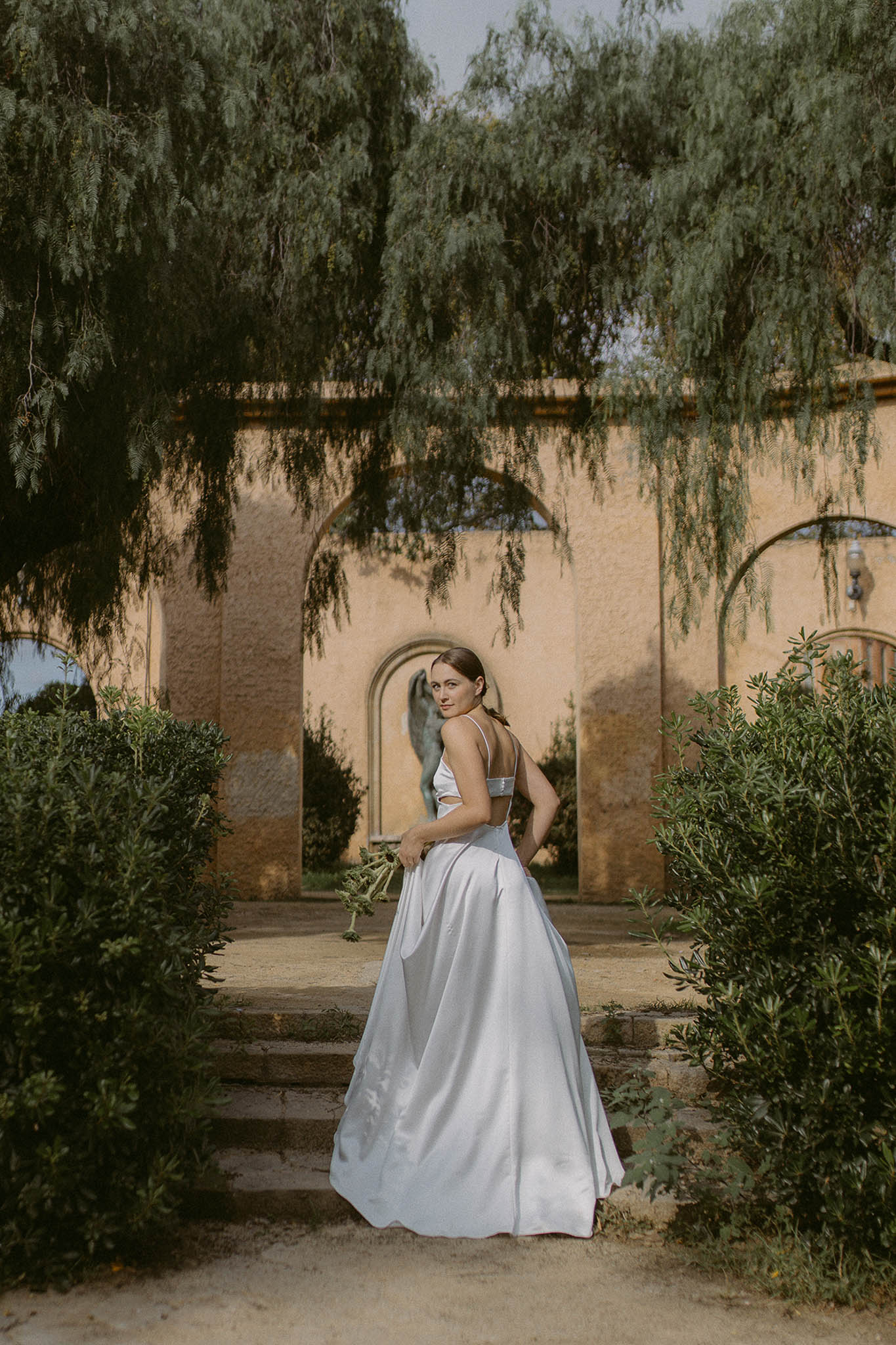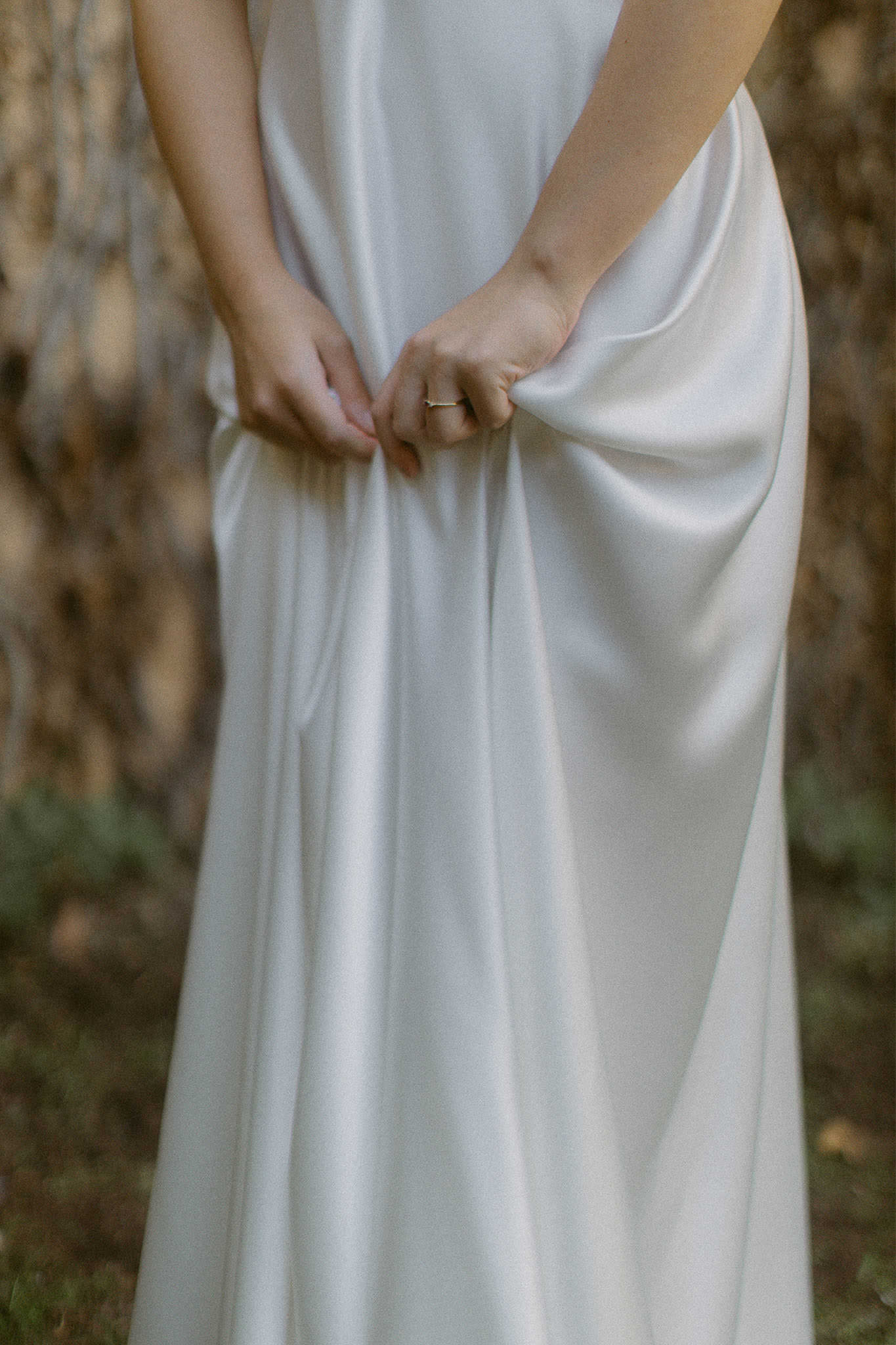 Our love for bows turned into a gorgeous wedding dress. The set of ribbons that wrap around the chest, inspired by a large satin bow, both hugs and shows the skin in an artful and delicate way. Lasso is the ideal dress for those brides who seek serene beauty in minimalist but powerful details.